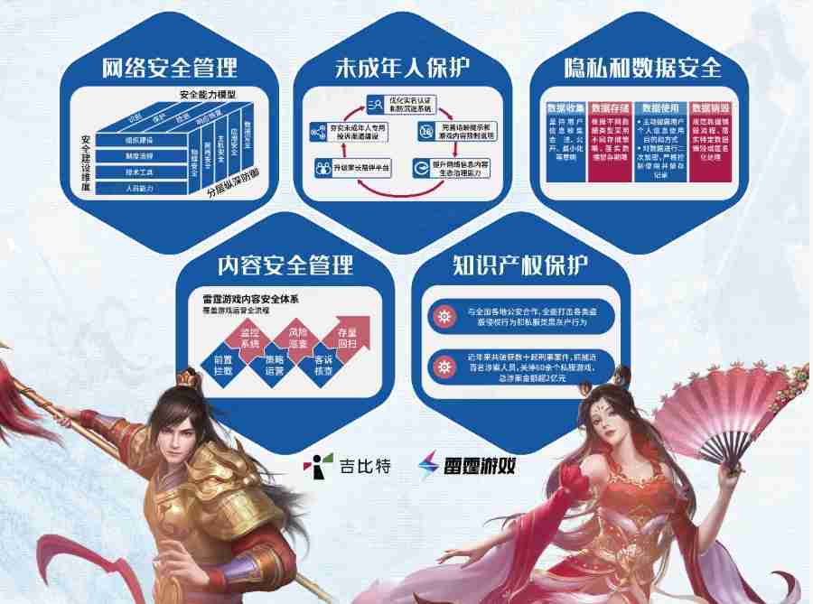 本次918.com展区以网络安全管理、、内容安全管理、、未成年人保护、、、、隐私和数据安全、、知识产权保护五个模块介绍公司游戏安全工作成果,,,体现918.com高度重视网络安全,,,,严格遵守相关法律法规要求,,,积极承担企业主体责任。。
